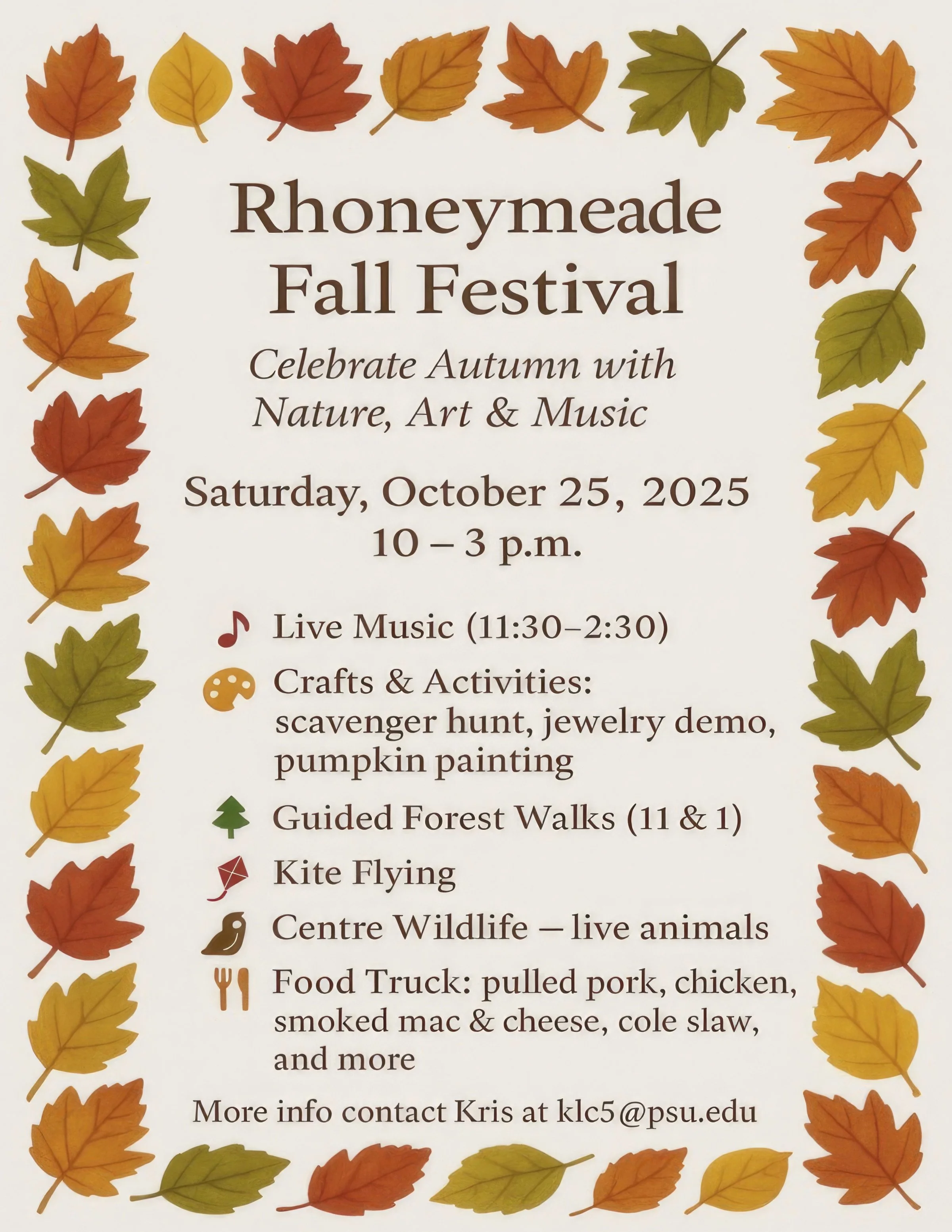 Come join us Saturday, October 25th from 10am to 3pm for the Rhoneymeade Fall Festival!