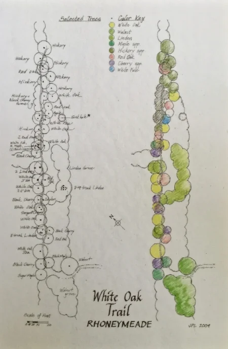 Stop in at the Studio and pick up an annotated guide to the Rhoneymeade Tree Walk.