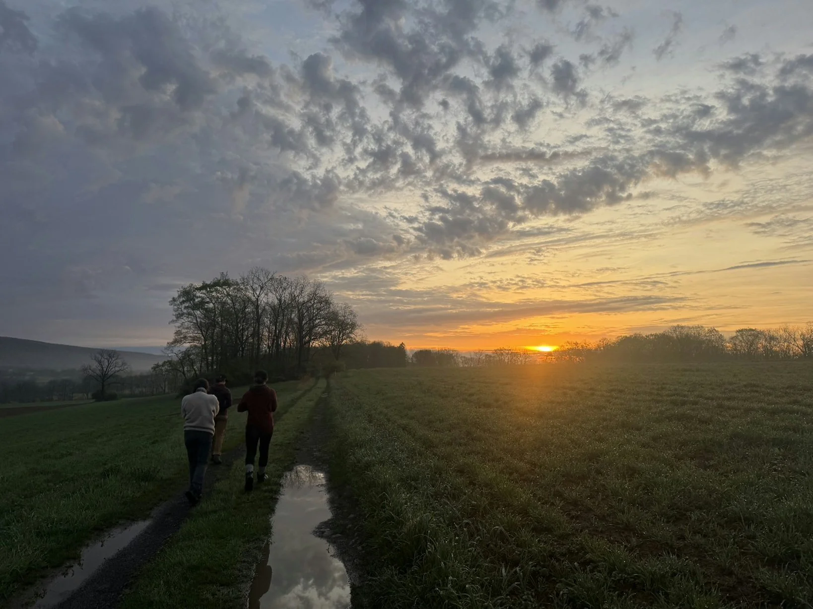 The sky melted into color and early morning light reflected off the curling steam as it streamed from our coffee cups. We started at Rhoneymeade, our boots collecting morning dew. We walked slowly, each noise causing us all to pause and tilt our ears to the sound. Our eyes searched one another’s in questioning glances until one person would pierce the silence with a whisper of identification.