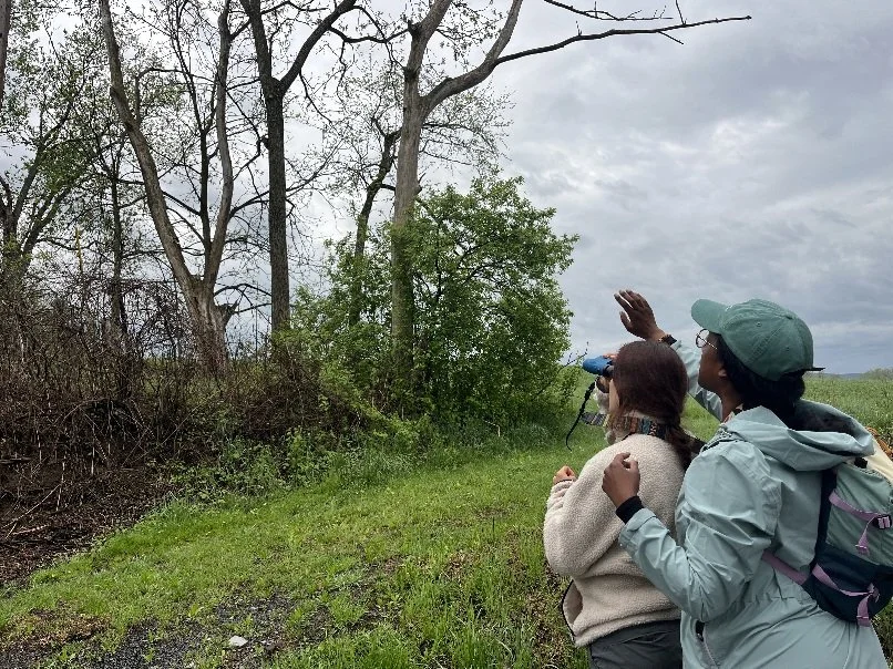 Jasmine directing Autumn’s gaze to find the bird in question. Sometimes it is challenging to get teammates to see where in the landscape to look!