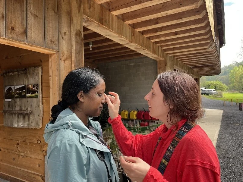 Autumn and Jasmine, at Chicory Lane, bejeweling each other to add a spark of energy for the next part of the adventure.