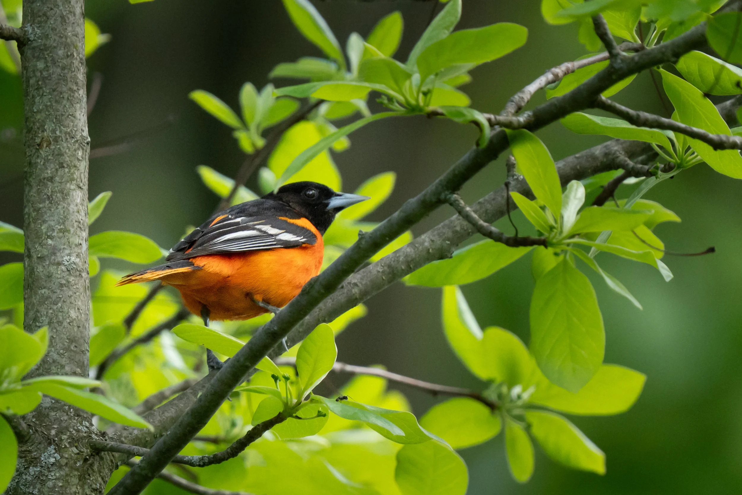 There is a least one pair of Baltimore Orioles nesting at Rhoneymeade. They have been seen and heard around the art studio for several weeks now. They have been a little quiet lately. Maybe trying not to wake the kids? Cornell Lab’s Merlin app has also been reporting the presence of Orchard Orioles, but the ones pictured here appear to be Baltimore Orioles. The pictures were taken about 2 weeks ago when nest construction was underway. Both males and females are beautiful, and always exciting to see. Bill R. PAMN Volunteer
