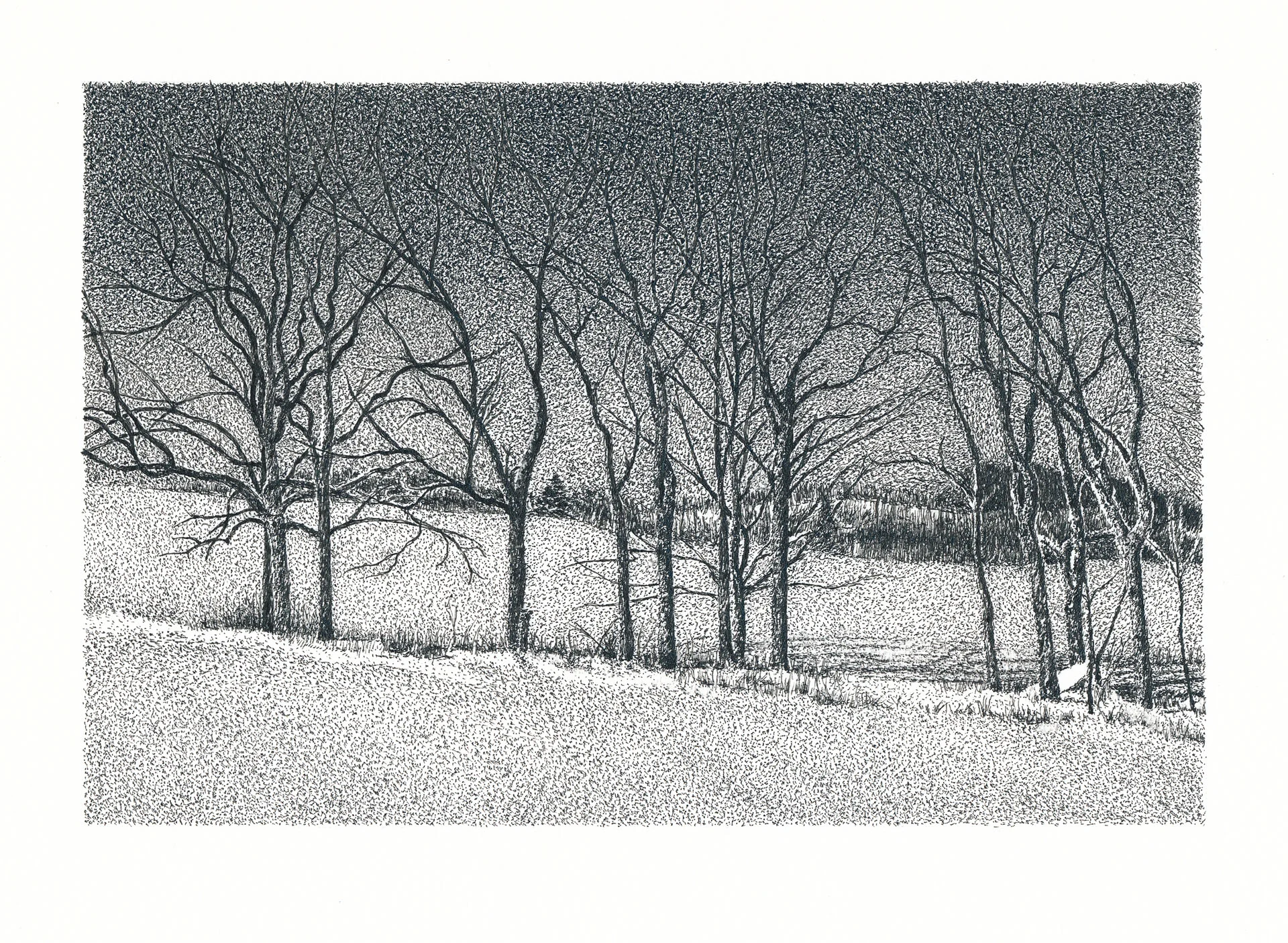 The focus of this month long exhibit will be Trees, including some subjects from the Rhoneymeade grounds. This is a rare opportunity to enjoy the original, not prints, - 11" x 14" pen & ink artwork from a nationally recognized artist in an intimate setting.
